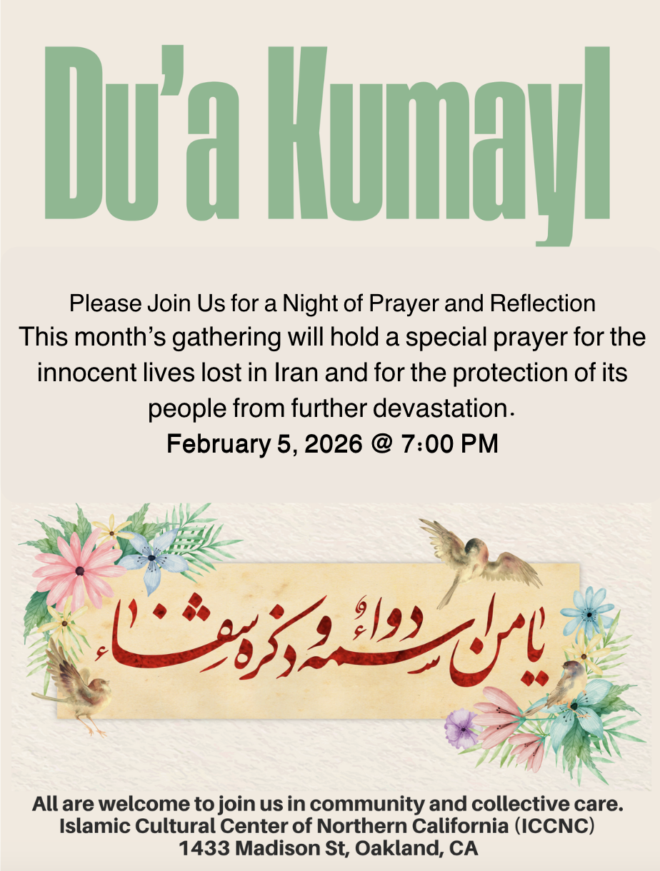 Please join us for our monthly reflection and recitation of du’a Kumayl. This month’s gathering will hold a special prayer for the innocent lives lost in Iran and for the protection of its people from further devastation. Join us in praying for healing and hope during a time of intense hurt and harm.
